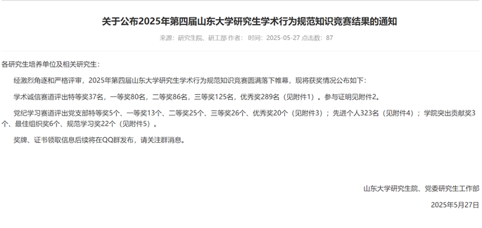 近日,学校研究生党委工作部网站公布了第四届太阳成集团tyc151cc研究生学术行为规范知识竞赛暨党纪学习教育知识竞赛的获奖名单。24级硕士第一党支部在党纪学习教育知识竞赛中取得良好成绩,学院获得规范学习奖,支部获得三等奖,支部黄海妍、李怡洁两位同志在本次比赛中获得“先进个人”称号。据悉,此次比赛共有30个学院的89个党支部组织参赛。24级硕士第一党支部始终严格执行学校贯彻落实中央八项规定精神学习教育的相关要求,积极动员...