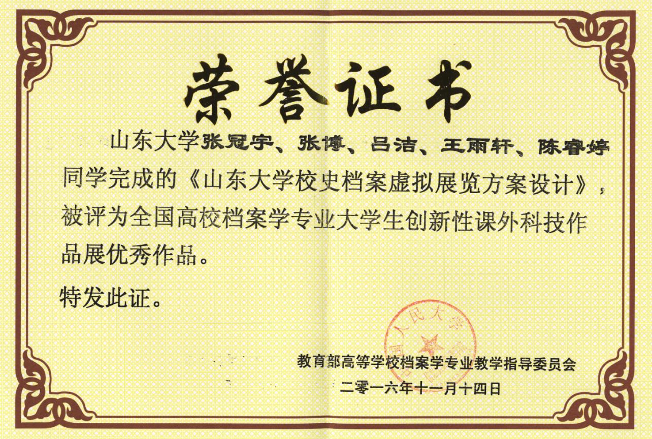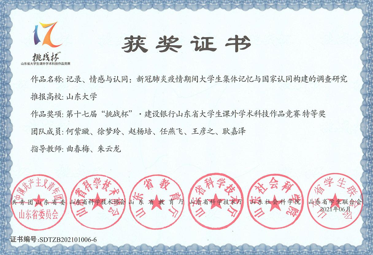 档案学专业学生获“挑战杯”山东省大学生