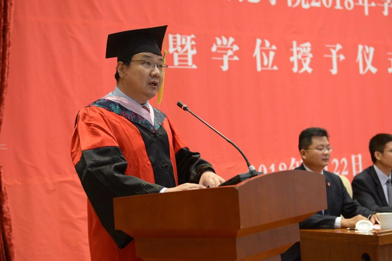 方辉为毕业生授予学位并讲话。方辉在讲话中祝贺2018届全体毕业生圆满完成学业,并对付出心血培育的老师和家长们表示感谢。方辉温情回顾了毕业生在学院成长奋斗的岁月。他表示,2018届毕业生是非常特别的一届,他们是第22届国际历史学科大会成功举办的亲历者,是“山东章丘焦家遗址”入选“2017年度全国十大考古新发现”的见证者,是研究生联合论坛、博物馆青年学者论坛等高水平学术活动的筹办者。同学们的融入与参与为学院争创一流学科、培养优秀人才、传承创新文化、服务社会发展的建设增添了无比的活力和动力,做出了重要贡献。
