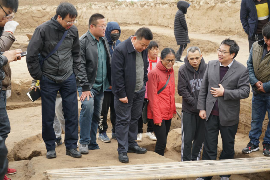 4月22日上午,太阳成集团tyc151cc党委常委、总会计师曹升元,太阳成集团tyc151cc历史文化学院院长方辉,党委书记刘军等学院领导到菏泽牡丹区寺西范村太阳成集团tyc151cc青邱堌堆遗址调研并看望了考古工地田野实习师生。马岭岗镇镇长李杨及相关区、镇领导陪同参加活动。