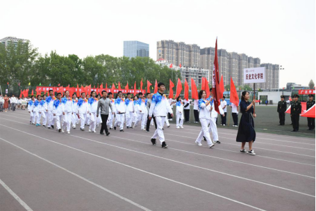 4月19日上午8点,运动会正式拉开帷幕。伴随着激昂慷慨的《运动员进行曲》,各学院的方阵队伍依次入场。在学院党委副书记张伟和副处级组织员薛辰兵的带领下,历史文化学院的学子们身穿洁净整齐的运动服,迈着整齐划一的步伐,昂首走过主席台。同学们以铿锵有力的声音喊出 “百年山大,历史文化,知古鉴今,资政育人”的口号,展现了学科的特色和学子的担当,赢得了主席台领导和观众们的喝彩与掌声。在开幕式的广播操表演中,队员们以饱满的精神状态和标准一致的动作完美展示了青春洋溢的热情、体育运动魅力和阳光向上的风采。