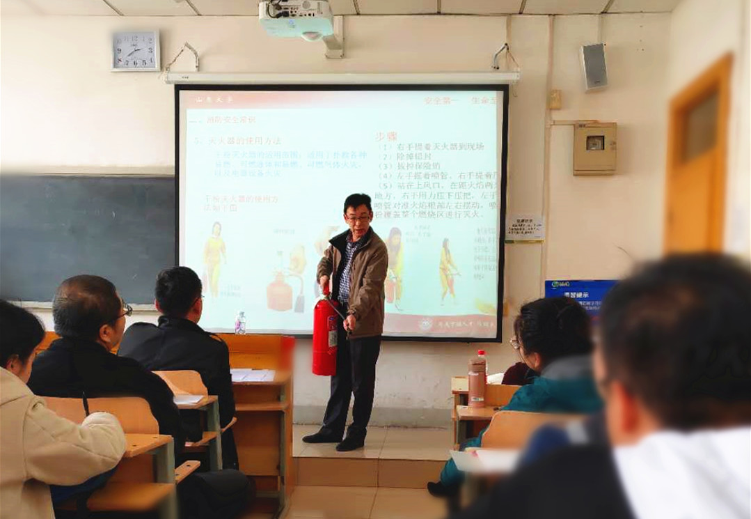 会上,通过播放安全警示片、火灾案例分析、安全政策解读等方式,类淑毅、杜春兴重点对消防安全的重要性、消防知识和技能等进行了现场讲解和示范教学,副院长王芬对学院实验室存在的突出问题以及下一步的工作行动进行了部署。最后,党委书记刘军讲话。她要求,一是要提高认识。要从政治的高度认识安全工作的重要性,要从敬畏生命的高度树立“生命至上,安全第一”的理念,要以“一失万无”的忧患意识绷紧安全之弦。二是要加强学习。全体师生都要加强实验室安全知识的学习和培训,学院下一步将采取多种措施,切实强化和提高师生的安全防范意识和安全责任感,提高实验室安全素质和管理能力。三是要细致排查。在前期排查的基础上,结合学校委托第三方评估、外聘专家排查的方式,全方位、无死角的开展拉网式排查,并且要做到即查即改,自己不能解决的问题及时上报。四是要建立机制,加强管理。学院要建立系统完善的实验室安全管理规定,出台应对各类突发情况的处置预案,靠制度牵引责任意识,靠精细的管理消除各种安全事故隐患。