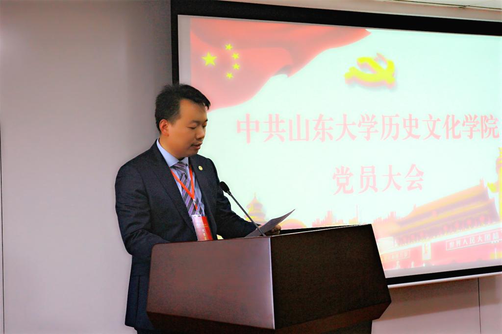 会上,历史文化学院党委副书记张伟代表学院党委向与会代表们作了关于党费收缴使用情况的报告。