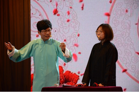 叶宇涵、王正携手表演相声《众口难调》,说学逗唱,妙趣横生,富有深意,引人思考。