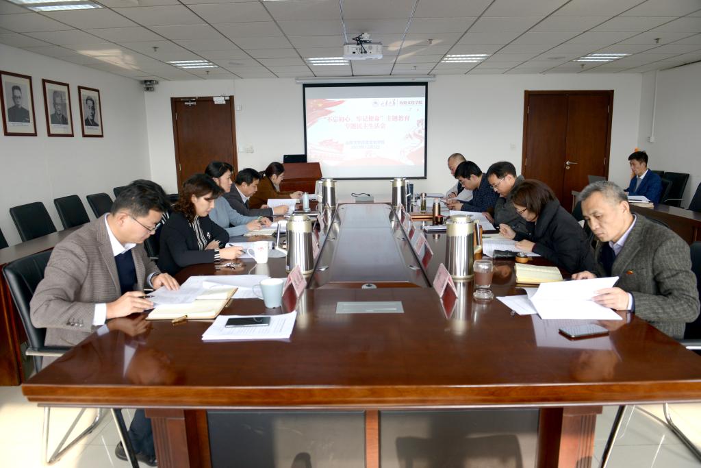 12月5日,按照学校“不忘初心、牢记使命”主题教育工作部署要求,历史文化学院党委领导班子召开主题教育专题民主生活会。会议紧扣学习贯彻习近平新时代中国特色社会主义思想这一主线,聚焦“不忘初心、牢记使命”这一主题,突出力戒形式主义、官僚主义这一重要内容,围绕理论学习有收获、思想政治受洗礼、干事创业敢担当、为民服务解难题、清正廉洁作表率的目标,充分运用主题教育成果,按照习近平总书记关于“四个对照”“四个找一找”的要求,盘点收获、检视问题、深刻剖析。