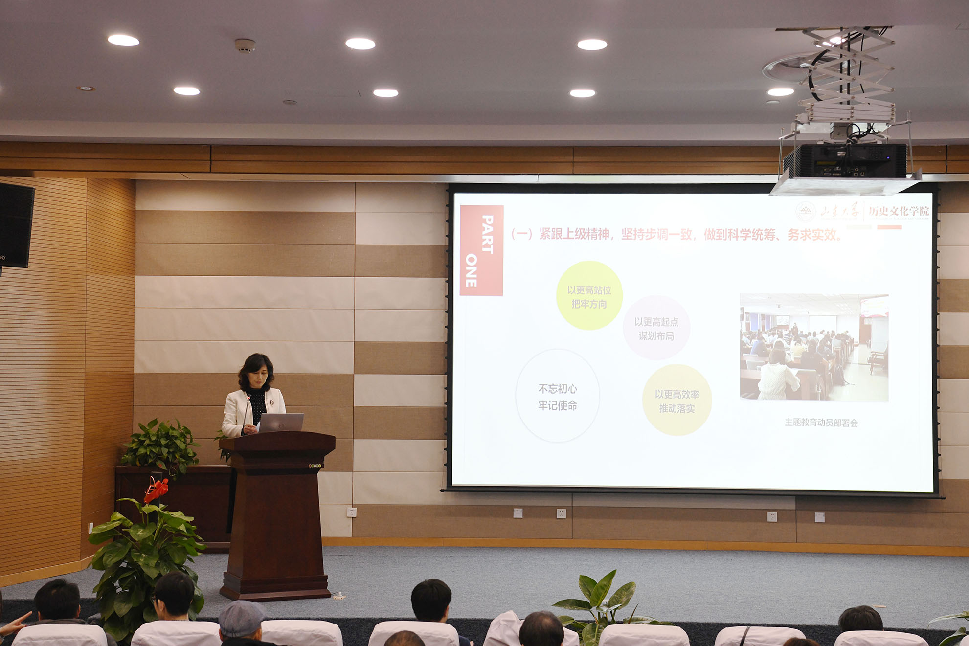 1月11日,历史文化学院“不忘初心、牢记使命”主题教育总结大会在青岛校区召开。历史文化学院党委书记刘军代表学院党委作了“不忘初心、牢记使命”主题教育总结汇报,学校第四指导组成员吕永胜出席会议并讲话。历史文化学院、文化遗产研究院、博物馆全体班子成员、各学系主任、支部书记和师生代表参加会议。历史文化学院党委副书记朱继磊主持会议。
