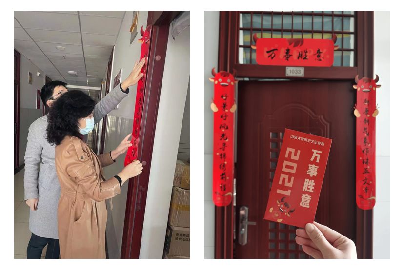 刘军一行代表学院为每位留校学生送去了新春礼包,并为同学们准备了精心定制的饱含美好寓意的过年春联,希望同学们感受到家的温馨氛围和新春节日气氛。同学们在感谢学院关心慰问之余,纷纷表示会继续遵守学校相关工作要求,合理规划时间、加强体育锻炼、不断增强自身综合素质,以良好风貌迎接新的奋斗征程。