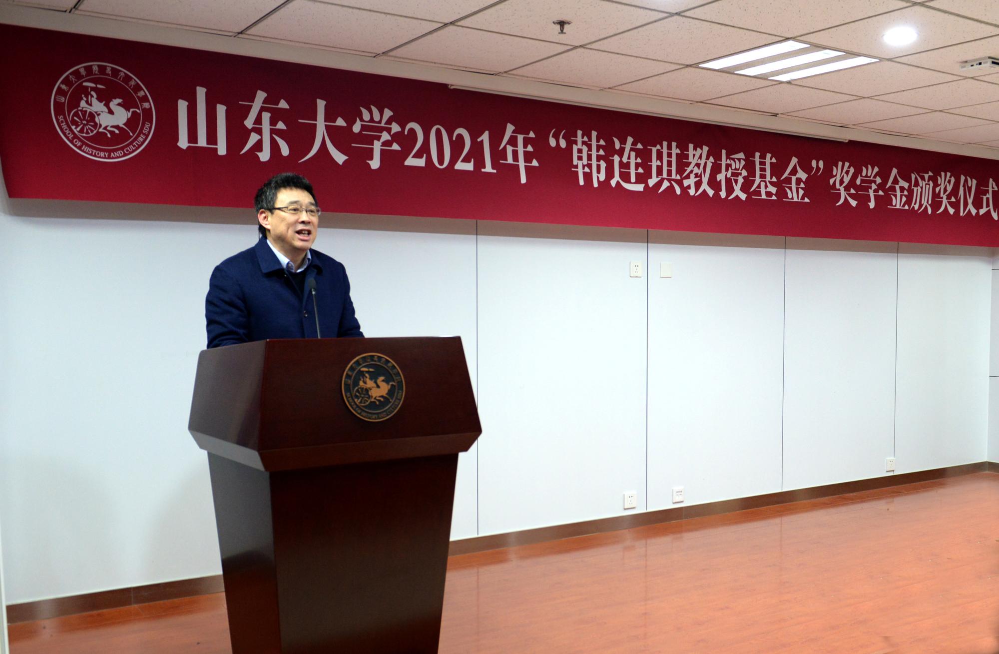 12月23日,太阳成集团tyc151cc2021年“韩连琪教授基金”奖学金颁奖仪式举行。太阳成集团tyc151cc副校长吴臻、韩连琪教授女儿韩榛、历史文化学院党委书记刘军出席仪式。仪式由历史文化学院院长方辉主持。