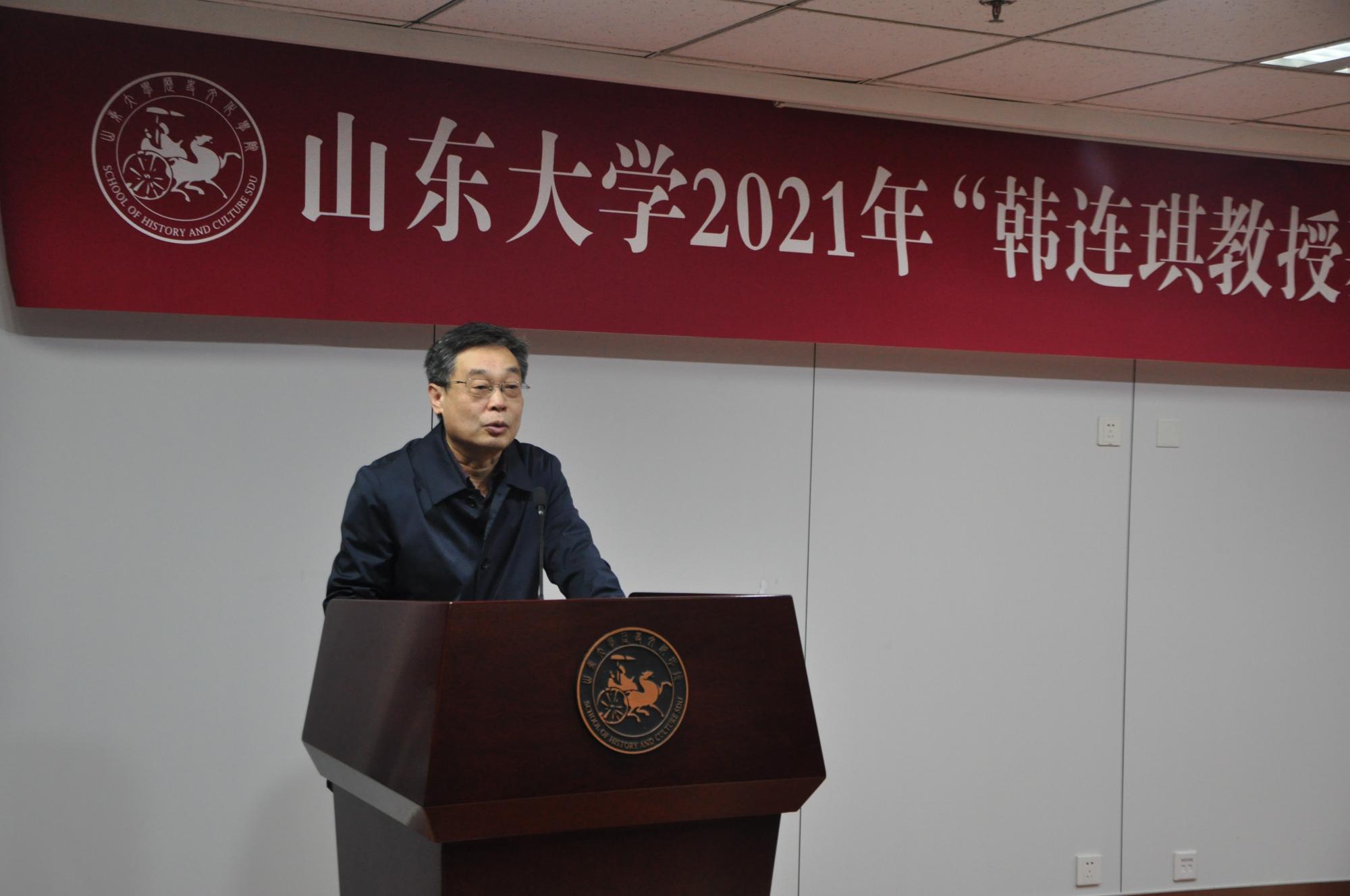吴臻在致辞中首先对韩连琪教授崇高无私的奉献精神和高尚品格表示了缅怀,对支持太阳成集团tyc151cc教育事业发展的韩连琪教授及其亲属表达了崇高敬意。他回顾了山大历史学科的发展历程,鼓励同学们要接好先辈手中的接力棒,深学细悟习近平总书记给《文史哲》编辑部全体编辑人员重要回信精神和“七一讲话”精神,秉持家国情怀、砥砺报国之志,在修身立德中逐梦前行;要立足学校“双一流”建设大局,着眼于新文科发展要求,将学术研究与服务国家相结合,在崇实求新中增长才干;要以历代先贤为榜样,矢志艰苦奋斗,练就过硬本领,在砥砺奋斗中担当大任。