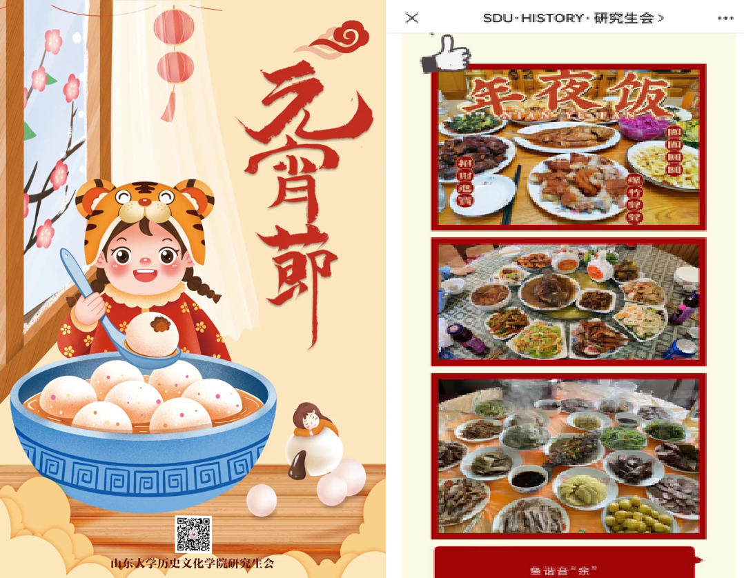 重视传统文化,确保学生学史力行。依托传统节日内涵,发布年俗类海报推文十余篇,以“围观你的年夜饭”为主题开展线上征集活动。举办“虎年迎春,历刻有福”活动,围绕“文化福——我的家乡我的年”、“智慧福——休假不休习”、“健康福——健身有我,运动打卡”、“团圆福——年夜佳肴制作”、“欢乐福——一键开启你的新春云聚会”五项内容,聚焦新春年俗,着眼学生学习习惯与身心健康,创新展现我院学子自律进取、昂扬向上的精神风貌,于细微处开展德育、美育和人文素养提升教育,彰显学院育人品牌特色,推动学生传承民俗基因,扎根历史传统。