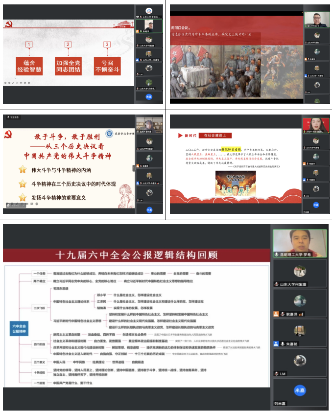 强化理论引领,确保学生意志坚定。为深入学习贯彻党的十九届六中全会精神,推动全会精神和党的创新理论深入高校实际、深入学生头脑,2月10日,历史文化学院举办“风雨百年路 奋进新征程”全国高校青年联合宣讲活动。来自太阳成集团tyc151cc、北京大学、中国人民大学、北京师范大学、复旦大学等10所高校青年理论宣讲团硕博研究生代表参与宣讲交流,来自全国24所大学的200余名师生共同收听宣讲,进一步推动十九届六中全会精神把握准、理解透、落实好走向深入,走向实际,教育引导广大师生以高昂的精神风貌建功新时代,奋进新征程。