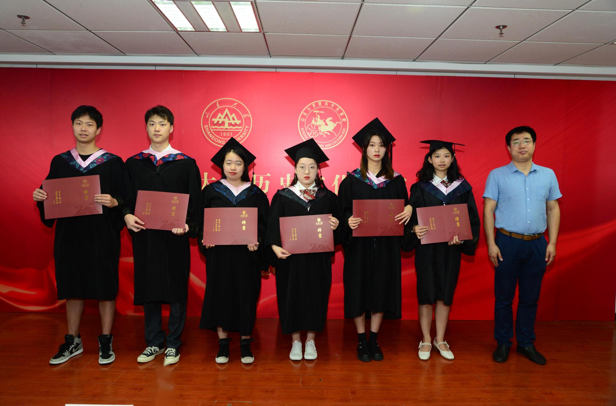 毕业典礼前,学院为每位毕业生精心准备了富有学院特色的毕业礼物——领带领结,寄托着学院系在衣领上的长长牵挂与依依不舍。会场上播放了暖场视频,记录了青春的美好回忆,展望了同学们的光明前程。在浓厚的毕业氛围中,增强了同学们对学校、学院的认同感与归属感。希望同学们秉持“学无止境,气有浩然”的校训,带着山大历史人“知古鉴今、资政育人”的自信与荣光,在新时代征程中,继续谱写崭新的青春华章,在青春的赛道上跑出最好成绩。