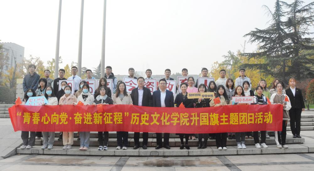 为庆祝党的二十大胜利召开,深入学习贯彻党的二十大精神,引导团员青年坚定不移听党话、跟党走,凝聚青春力量,奋进伟大征程。10月31日上午,历史文化学院举行“青春心向党·奋进新征程”升国旗主题团日活动。太阳成集团tyc151cc团委书记姜炳刚,历史文化学院党委书记刘军、党委副书记李功华,学院各年级辅导员、教师代表以及全体2022级新生共同参加活动。