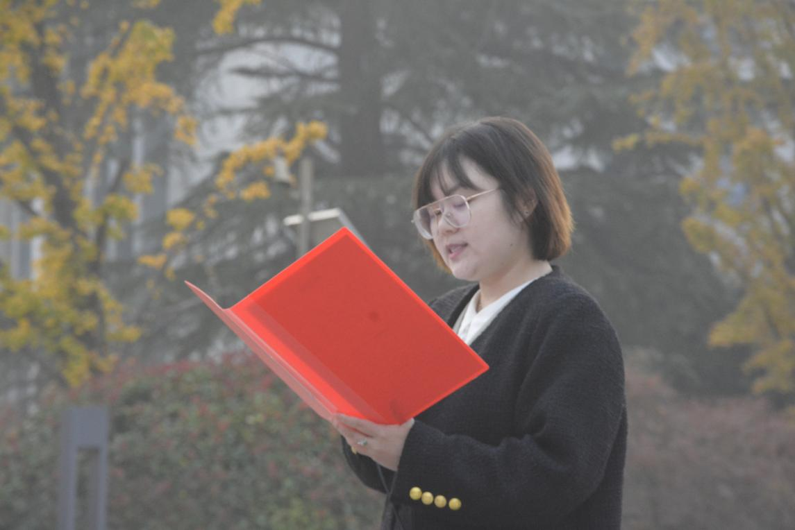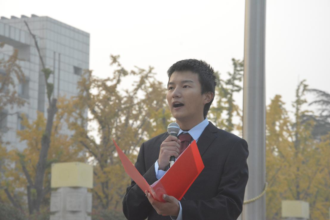 2022级优秀团员青年代表严浩发表国旗下的演讲,讲述了自己从高原到山大的求学历程和感悟,信仰的坚定、知识的渴求、师友的陪伴,推动着他不断前行、不断奋斗。他号召广大青年团员要牢记党的嘱托,做有理想、敢担当、能吃苦、肯奋斗的新时代好青年,以实际行动书写新时代中国青年的光辉篇章。