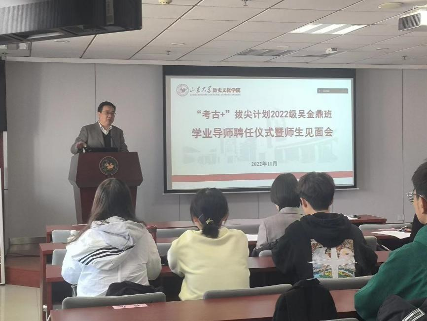 方辉教授对2022级新生的到来表示热烈欢迎,对我校考古系发展历程进行了回顾,对导师制设置的基本情况进行了介绍。同时,对吴金鼎班的同学提出了四点期望:一要学会主动学习,夯实专业基础,广泛阅读,开拓思维眼界;二要与导师进行沟通交流,保持高涨的学习热情;三要掌握学科学习方法,探索跨学科学习与机动式学习,实现综合发展;四要树立正确三观,敢于进取创新,勤于实践奋斗,以坚实的行动与昂扬的热情书写成为优秀考古学家的理想乐章。