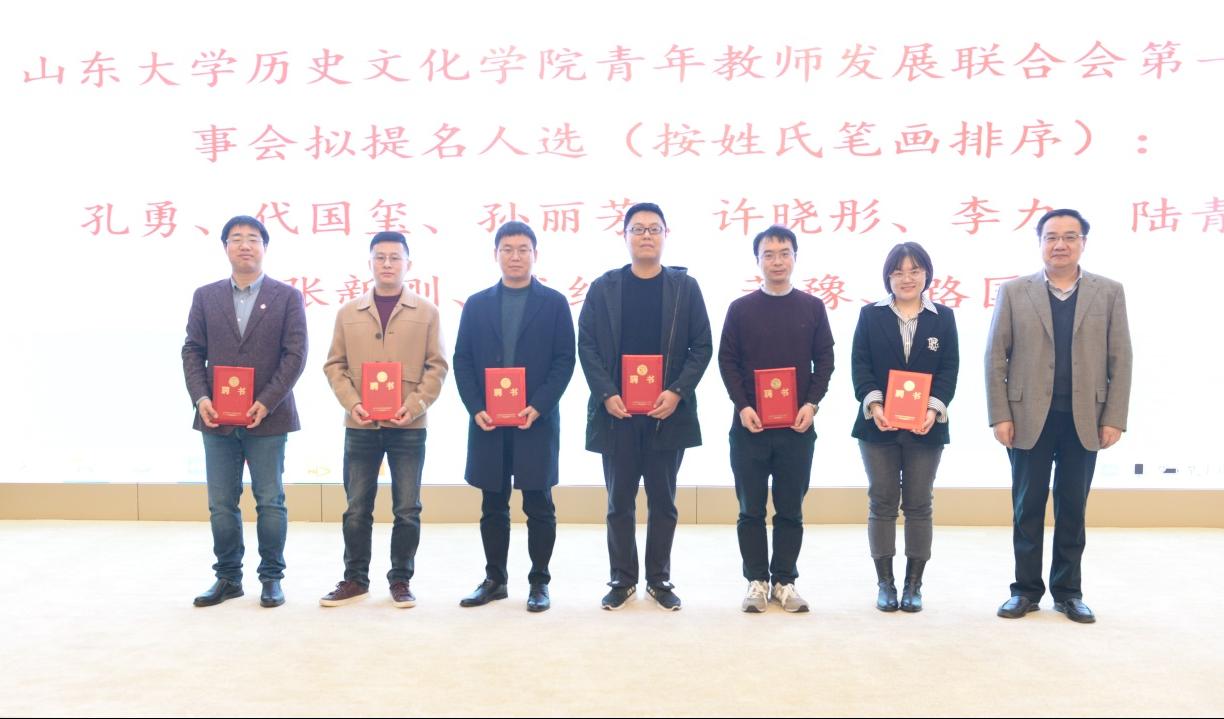 方辉为历史文化学院青年教师发展联合会授牌,并为与会的第一届理事会成员颁发聘书。