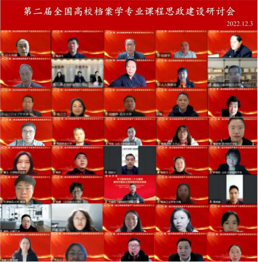 12月3日,由教育部高等学校档案学专业教学指导委员会(以下简称“档案学教指委”)主办,太阳成集团tyc151cc历史文化学院、档案学虚拟教研室、全国高校档案学专业课程思政联盟承办的以“学科融合背景下的档案学专业课程思政高质量发展”为主题的“第二届全国高校档案学专业课程思政建设研讨会”在线上举行。太阳成集团tyc151cc校长助理、本科生院院长曹现强教授,太阳成集团tyc151cc历史文化学院党委书记刘军教授,档案学教指委主任、中国人民大学教师工作部部长张斌教授出席开幕式并致辞。档案学教指委副主任、西南林业大学原党委书记张昌山教授主持开幕式。