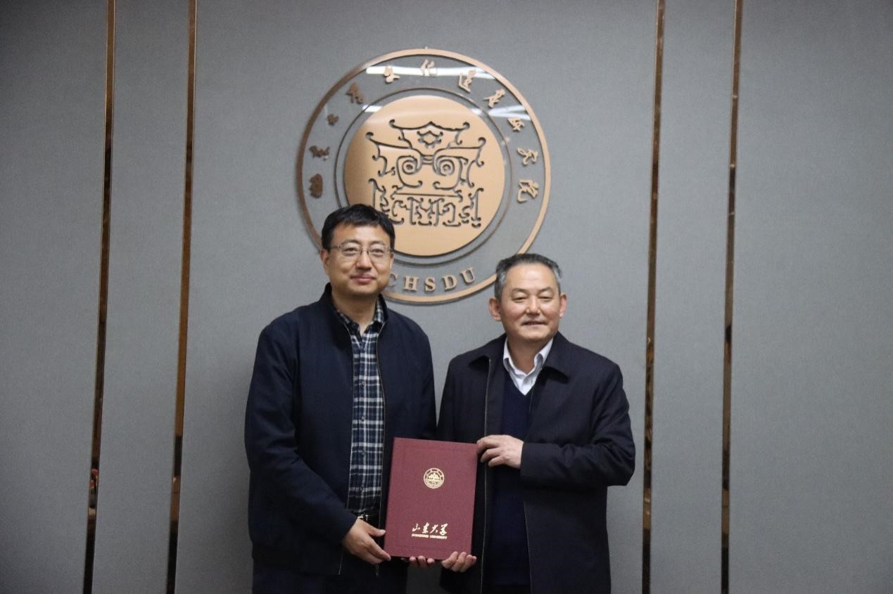 方辉介绍了郑同修的基本情况。郑同修,原山东文物考古研究院院长、党总支书记,现任山东博物馆党委书记、馆长,为我校80级考古专业校友。他长期从事田野考古与考古学研究工作,主要研究领域为战国秦汉考古,主持或参与考古发掘项目多次获得全国十大考古新发现。郑同修一直十分关心母校的发展,与我校本科生、研究生实习,以及课堂教学方面开展了多方位合作。