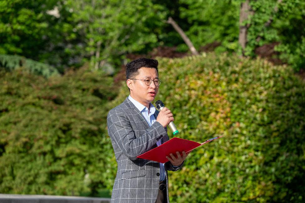 历史文化学院历史学系孔勇作为教师代表发言。他从《义勇军进行曲》谈起,结合求学经历,鼓励同学们坚定理想信念,勇担时代责任,从解决具体问题入手,勇敢面对困难和挑战;要付出切实行动,做到知行合一,在具体行动中化解焦虑、打开局面,实现人生价值;要涵养爱国情怀,把信仰转化为实际行动,将“小我”融入“大我”,在强国复兴的伟大征程中贡献青春力量。