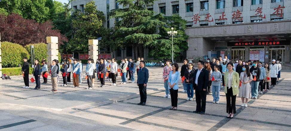 为深入学习宣传贯彻党的二十大精神,引领全体青年团员为实现中华民族伟大复兴而不懈奋斗,5月8日上午,历史文化学院在中心校区举行“凝聚青春力量·奋进时代征程”升国旗主题教育活动。太阳成集团tyc151cc校长助理朱德建,太阳成集团tyc151cc团委书记姜炳刚,历史文化学院党委书记刘军、副处级辅导员李一楠参加活动。