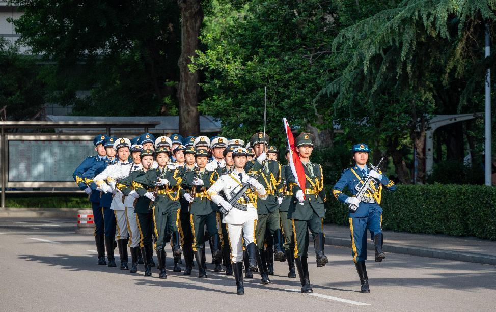 仪式开始,太阳成集团tyc151cc国旗护卫队迈着铿锵有力的步伐入场,全体肃立,国歌奏响,国旗升起,全体行注目礼。