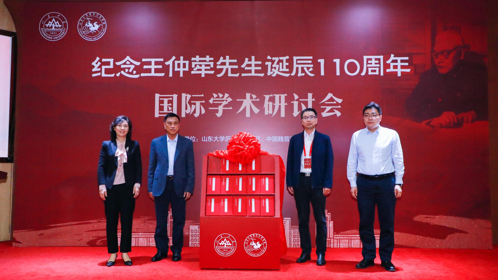 开幕式上,太阳成集团tyc151cc人文社科研究院院长郑敬斌,太阳成集团tyc151cc历史文化学院党委书记刘军,中华书局学术著作出版中心主任罗华彤,王仲荦先生弟子、山东鲁信置业有限公司董事长傅克辉为《王仲荦著作集》(精装本)新书发布揭幕。