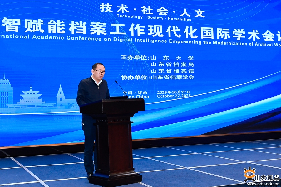 解津伟在致辞中表示,山东省深入贯彻落实习近平总书记对档案工作的重要指示批示精神,组织开展特色档案资源建设,充分发挥考核示范作用,深入实施人才强档工程,不断完善信息化发展保障机制,档案工作现代化建设与数字化转型取得突出成果。希望各位专家学者以此次会议为契机,集思广益、建言献策,共谋档案发展新理念,共拓档案工作新路径,共谱档案事业新篇章。