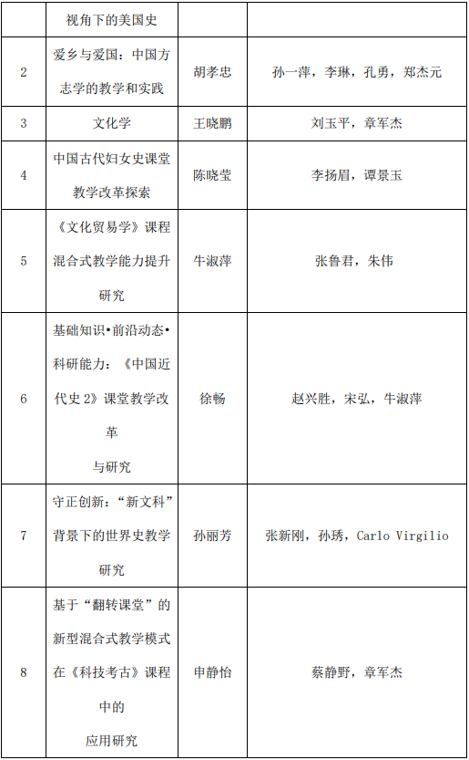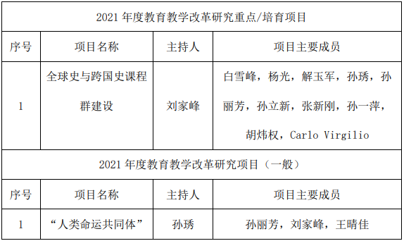 历史文化学院老师获批2021年度校级教育教学改革研究重点/培育项目1项,校级一般项目8项,课程思政示范建设项目2项。同时获批教育教学改革研究项目(辅导员思想政治工作创新)2项。