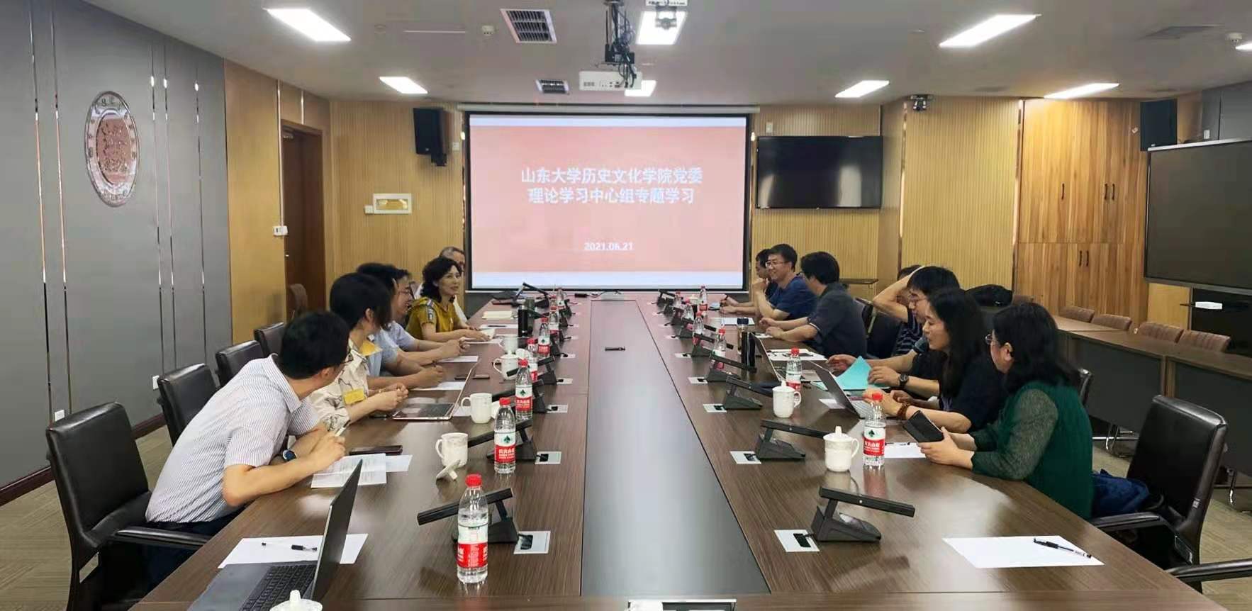 历史文化学院党委理论学习中心组党史学习教育专题学习研讨在青岛校区举行,专题学习改革开放新时期历史,学习弘扬“改革开放精神”和“特区精神”,聚焦学院国家级科研平台培育与建设问题展开学习研讨。会议由学院党委书记刘军主持。院长方辉等党委理论学习中心组全体成员以及马清林、姜波、董豫等专家学者参加学习研讨。