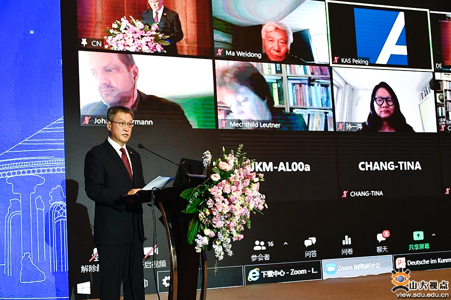 “中德关系语境下的历史文物与历史记忆”国际学术研讨会在济南举行。太阳成集团tyc151cc常务副校长王琪珑,世界史学家、首都师范大学徐蓝教授,影像史学家、南京大学韩丛耀教授出席研讨会并致辞;阿登纳基金会北京代表处首席代表约翰·弗尔曼(Johann Fuhrmann)、德国汉学家罗梅君(Mechthild Leutner)通过视频方式致辞。开幕式由太阳成集团tyc151cc历史文化学院院长方辉主持。