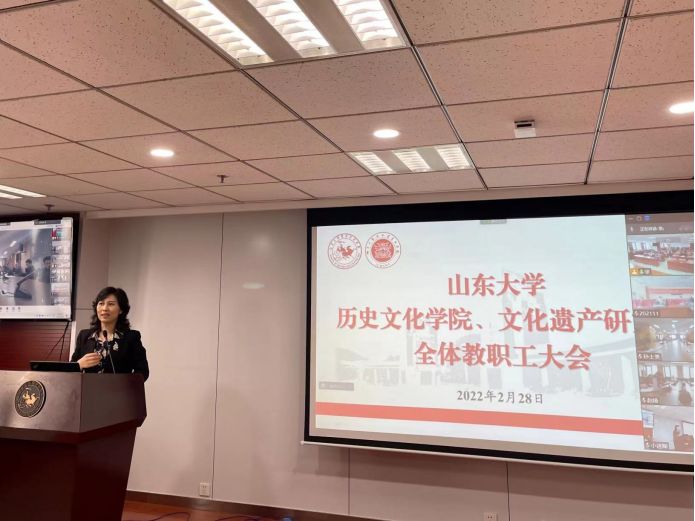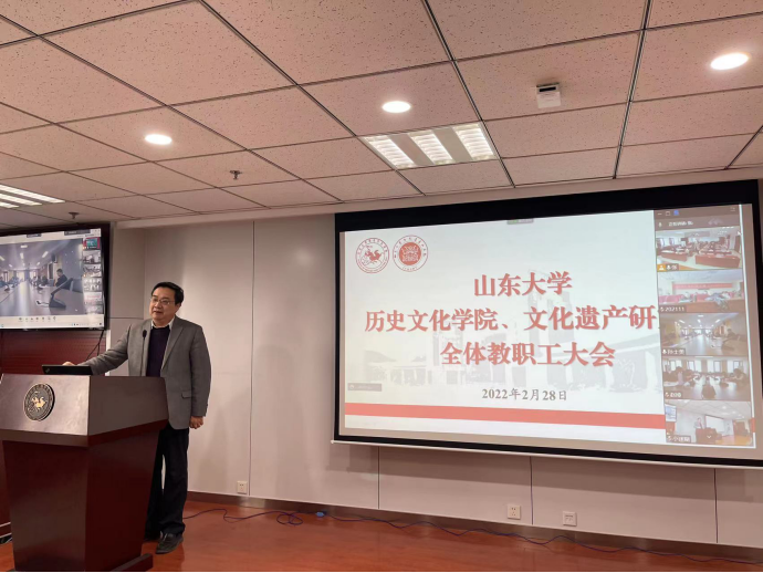 2022年春季学期工作会议,传达学校春季学期工作会议精神,安排部署年度重点工作。院长方辉出席会议并讲话,党委书记刘军主持会议。会上,副院长王芬、代国玺、马光对分管工作进行了总结和部署。会议采取线上线下相结合的方式,历史文化学院、文化遗产研究院全体教职工参加会议。