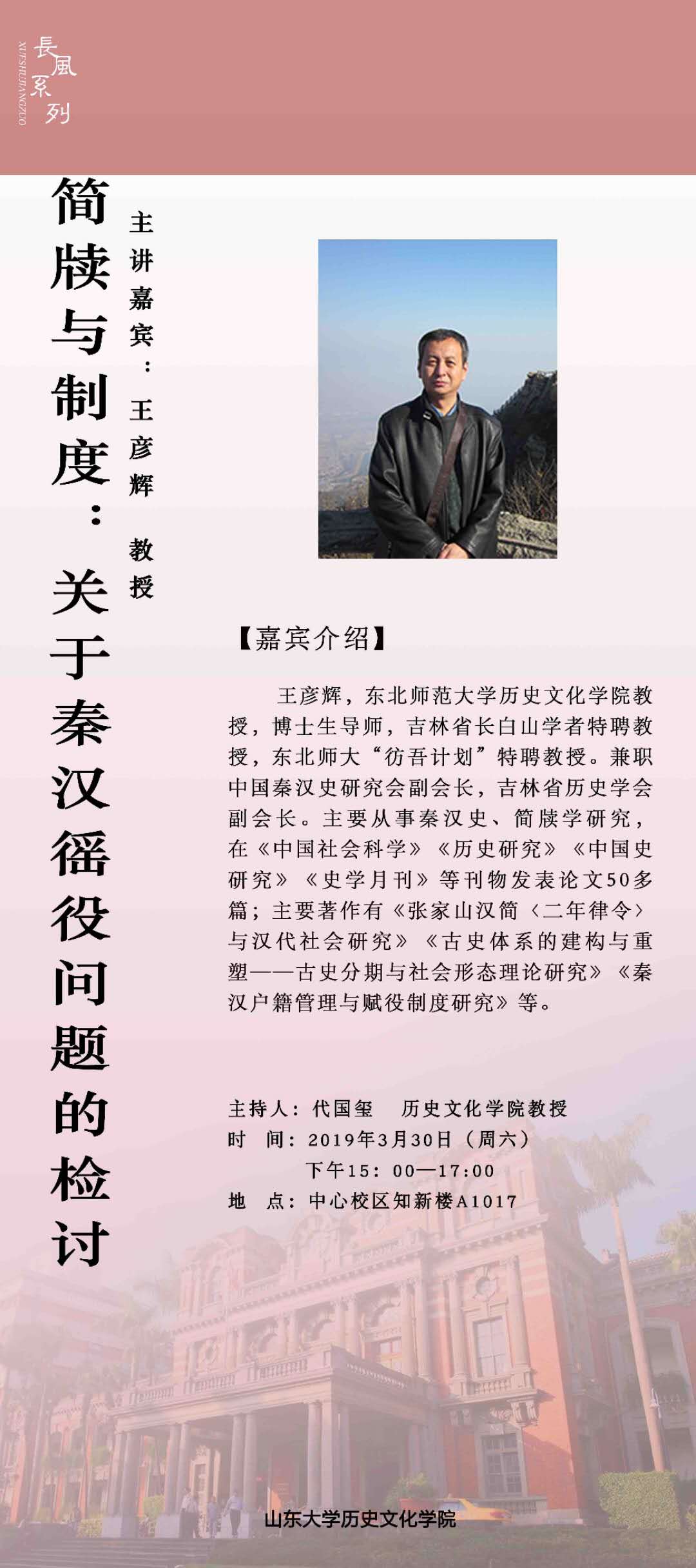 【长风讲坛】长风系列学术讲座——简牍与制度:关于秦汉徭役问题的检讨