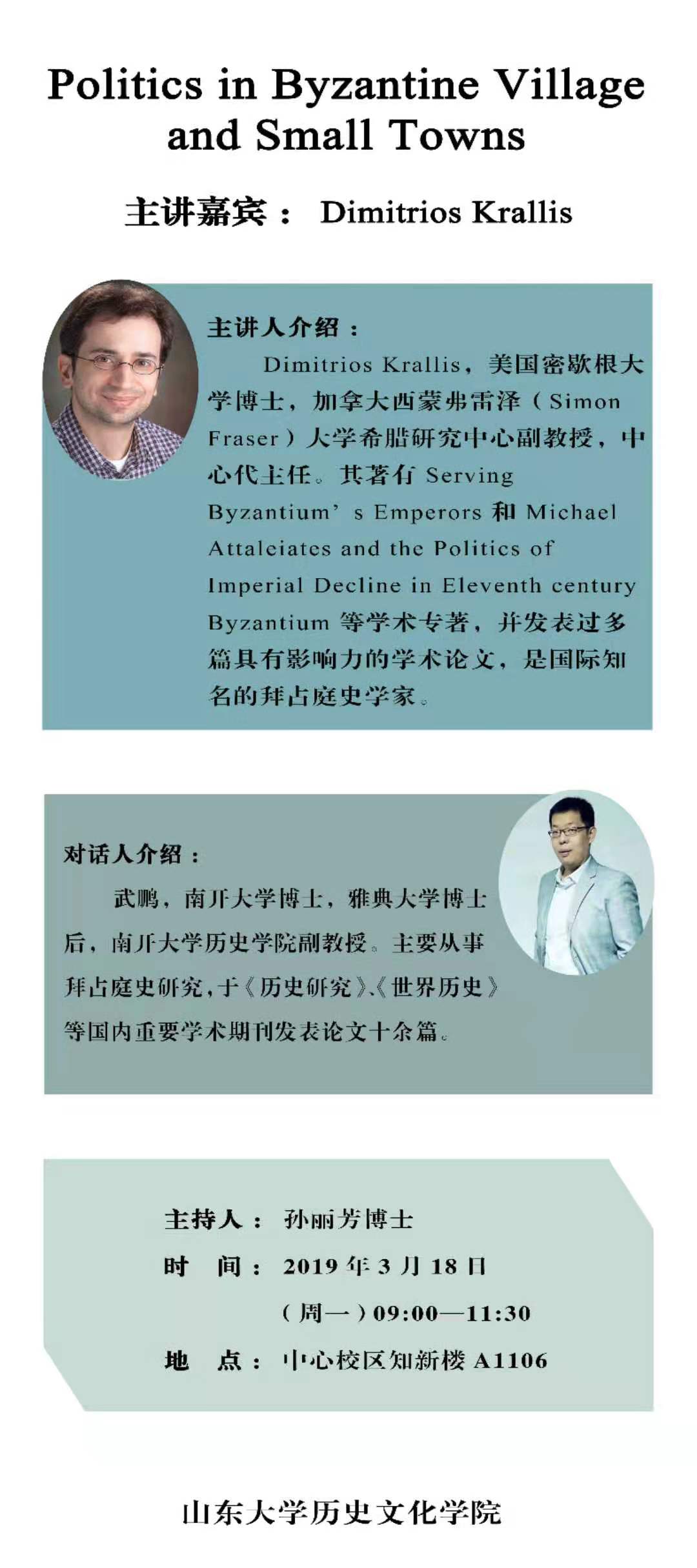 【长风讲坛】长风系列学术讲座——Politics in Byzantine Village and Small Towns
