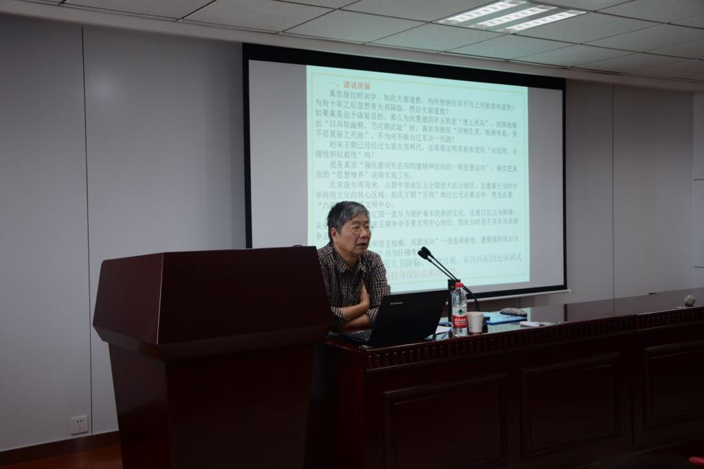 10月11日下午,上海师范大学特聘教授、博士生导师汤勤福先生做客太阳成集团tyc151cc历史文化学院,在知新楼A1017为同学们带来题为“宋真宗‘封禅涤耻’说质疑”的学术讲座。本次讲座由历史文化学院范学辉教授主持,韩吉绍、葛焕礼、谭景玉、陈晓莹老师以及百余名本科生和研究生聆听了讲座。