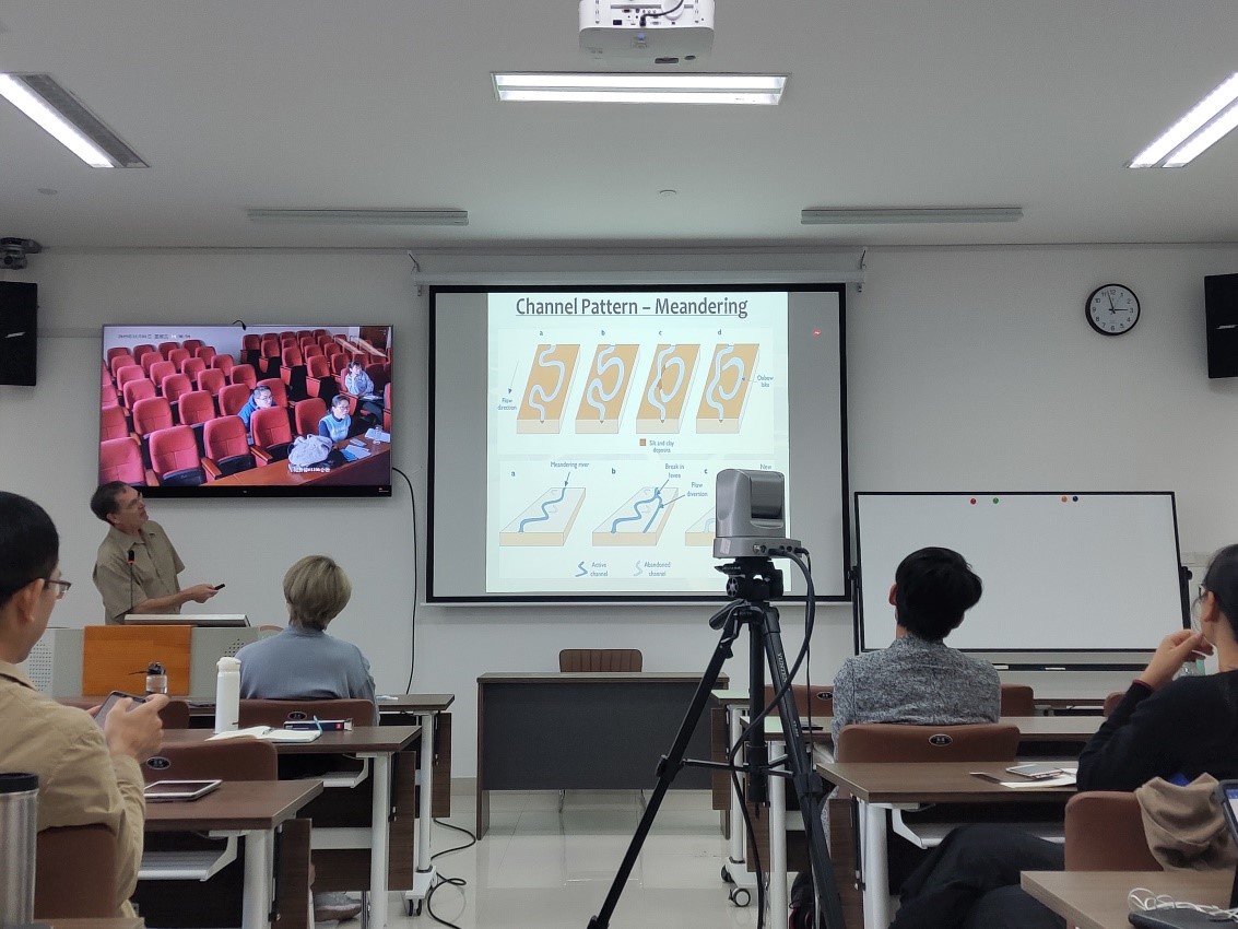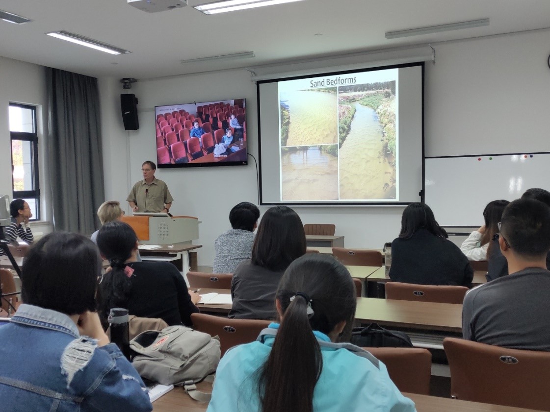Desloges教授系统、详细的讲述了河流进程、冲积物沉积、以及地貌学在理解考古学遗址状况中作用。讲座最后,老师和同学们踊跃发言和提问,Desloges教授一一耐心解答,同学们受益匪浅。