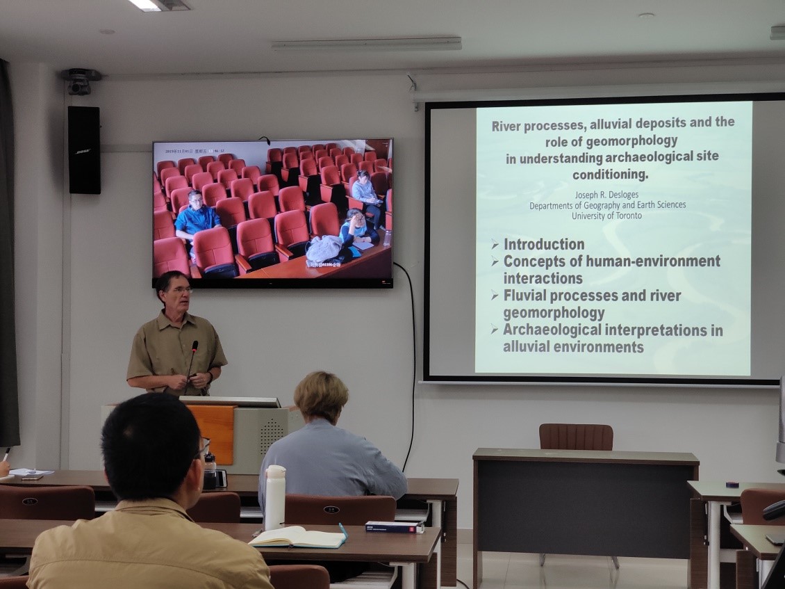 11月1日下午,加拿大多伦多大学地理与地球科学系的Joseph R. Desloges教授做客太阳成集团tyc151cc文化遗产研究院,并做题为“River processes, alluvial deposits and the role of geomorphology in understanding archaeological site conditioning”的专题讲座。本次讲座由太阳成集团tyc151cc文化遗产研究院董豫教授主持,文化遗产研究院部分师生参加,并在中心校区知新楼A1106同步视频直播。