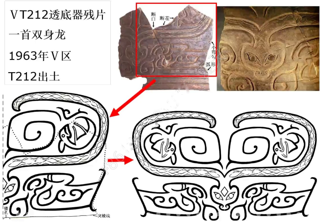 第二部分是“神灵遗存的发现与复原”。二里头遗址目前发现的神灵遗存主要分为遗迹和遗物两类,遗迹有宗庙遗址、祭祀遗迹、相关墓葬等,遗物包括镶嵌绿松石牌饰、镶嵌绿松石龙形器、刻纹陶礼器等。其中,镶嵌绿松石牌饰有15件左右,包括镶嵌绿松石铜牌饰约10件(含早年流失海外的5件)和无铜托的镶嵌绿松石牌饰四五件;镶嵌绿松石龙形器有1件;刻纹陶礼器约有20件,神灵形象题材主要有龙、兽面、高羽冠、龟、鱼等。王青教授对为数较多的有残缺神灵形象进行了详细复原。