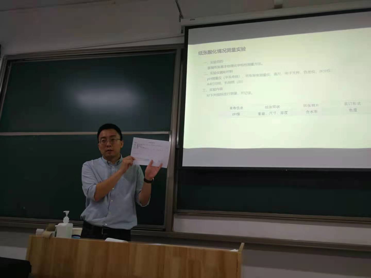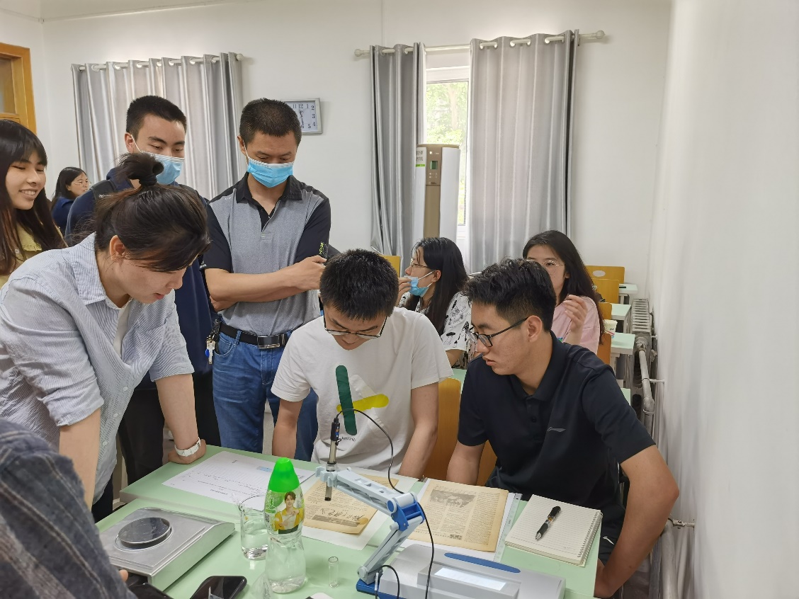 侯萌老师在介绍纸张酸化情况测量实验