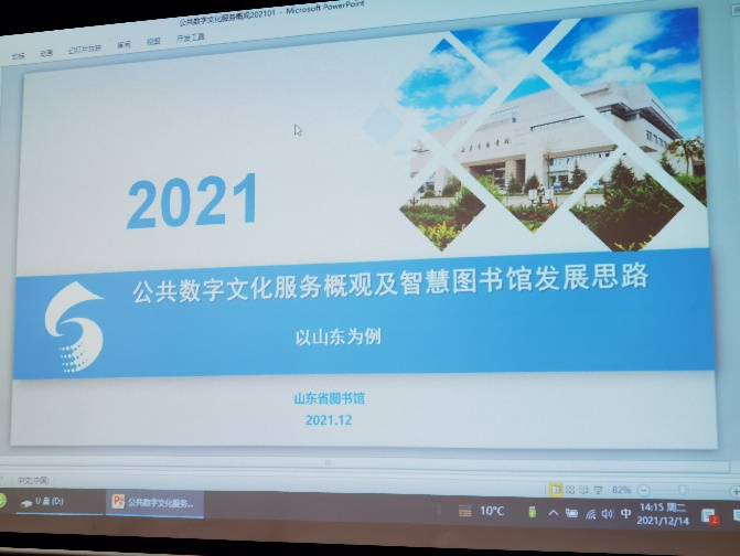 随后,刘馆长从近年来山东省智慧图书馆建设基本情况、存在的问题与不足、下一步工作设想、工作建议四个部分具体介绍了山东省图书馆在智慧图书馆建设方面的前沿实践。刘馆长认为智慧图书馆不仅是场馆、软硬件设施智慧化,也是资源加工智慧化,更是服务智慧化。下一步,山东省图书馆将积极推动智慧化服务空间建设,大力推进智慧图书馆基础支撑平台建设,持续加强基础数字资源体系建设,深入开展数字资源精细化标引,不断提升智慧化水平。