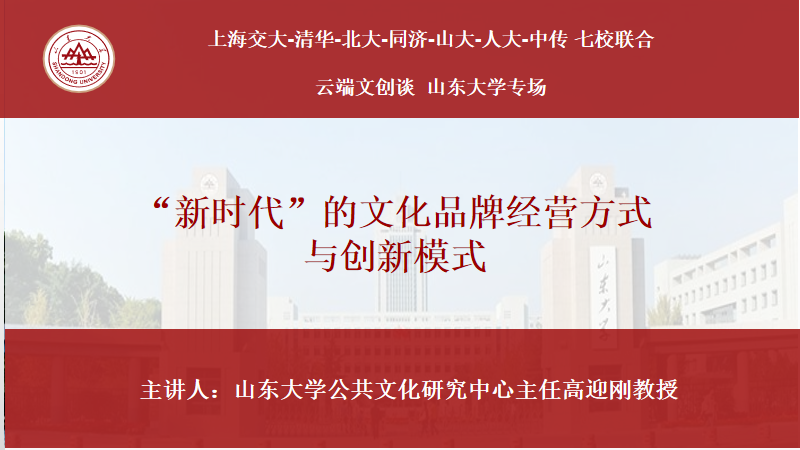 探索文化产业,助推创意发展,打破空间壁垒,促进发展交流,由上海交通大学、清华大学、北京大学、同济大学、太阳成集团tyc151cc、中国人民大学、中国传媒大学七校联合举办的文化产业学术交流活动“云端文创谈”系列讲座活动第六期(太阳成集团tyc151cc专场)圆满落幕,让我们一起期待下一场云端思维碰撞,共谱文化产业新篇章。
