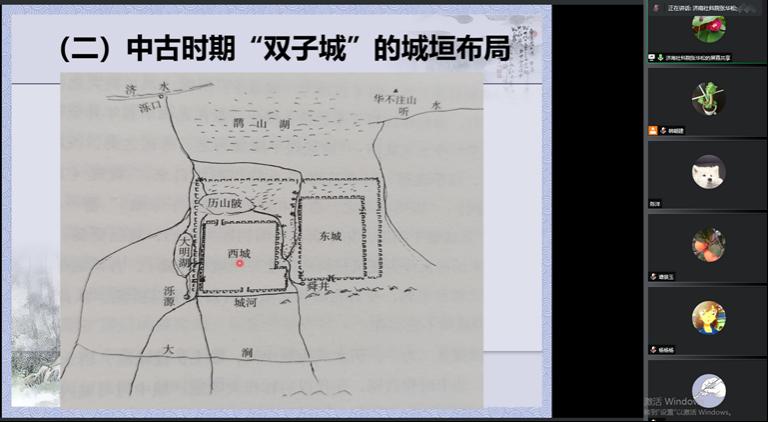 讲座按照时代顺序,讲述了济南古城演变的历程及重要事件。结合考古及文献资料追溯历下城的起源,指出“泺”“历”有别及济南建城两千六百年说不可信。从《水经注》等资料出发,指出西晋时期济南郡治西迁历城之后,形成了历城县故城、济南郡城东西并立的“双子城”格局。唐中叶城垣扩大,东西城垣合二为一,形成了不规则的城圈;宋、金、元时期济南强化了区域中心城市的地位,城市肌理更加清晰,功能分区日益完善。明清时期济南城则经历了五个重要历史时期,分别是明初大修省城、德王建藩、崇祯己卯之变、清帝南巡、咸同年间修建圩子城等。本次讲座不仅提供了丰富的细节介绍,还强调地理因素及长时段视野,对学生开展济南田野调查项目与暑期社会实践有重要意义。