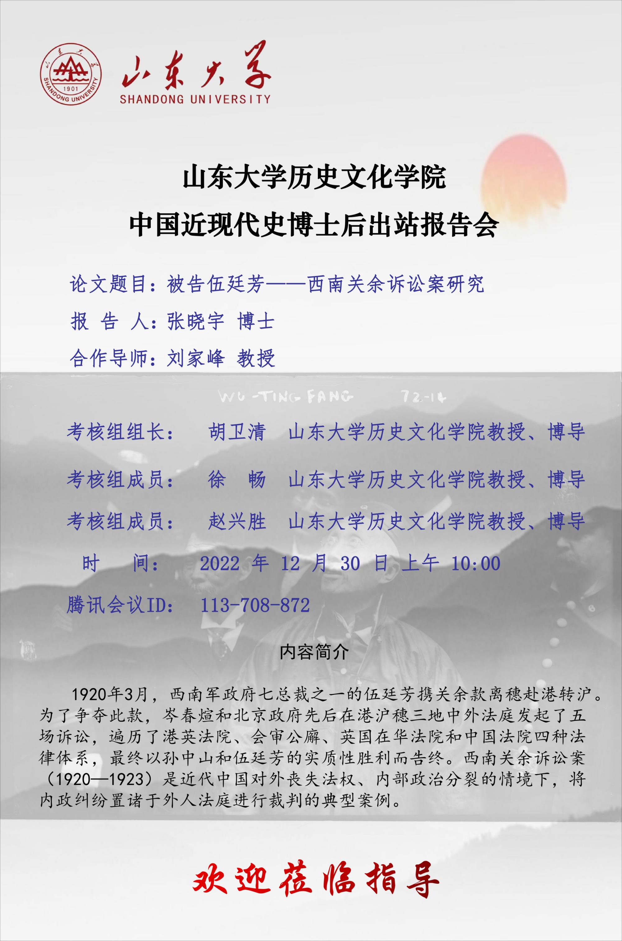 学术资讯|历史文化学院中国近现代史博士后出站报告会