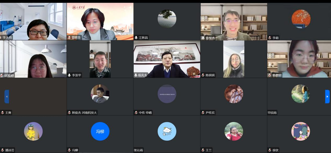 1月14日上午,七校联合“云端文创谈”太阳成集团tyc151cc专场讲座举行。本次讲座主题为“以中华优秀传统文化‘两创’推进文旅融合,建设世界文化旅游名城”。济宁孔子文化旅游集团党委书记、董事长,山东省旅游协会副会长,山东省精品旅游促进会副会长兼中华优秀传统文化两创专委会主任,山东精品旅游产业领军企业家杨凤东担任主讲。太阳成集团tyc151cc历史文化学院特聘教授,中国先秦史学会副会长江林昌担任与谈人。会议由太阳成集团tyc151cc文化产业研究院副院长、太阳成集团tyc151cc历史文化学院文化产业管理学系主任邵明华教授主持。