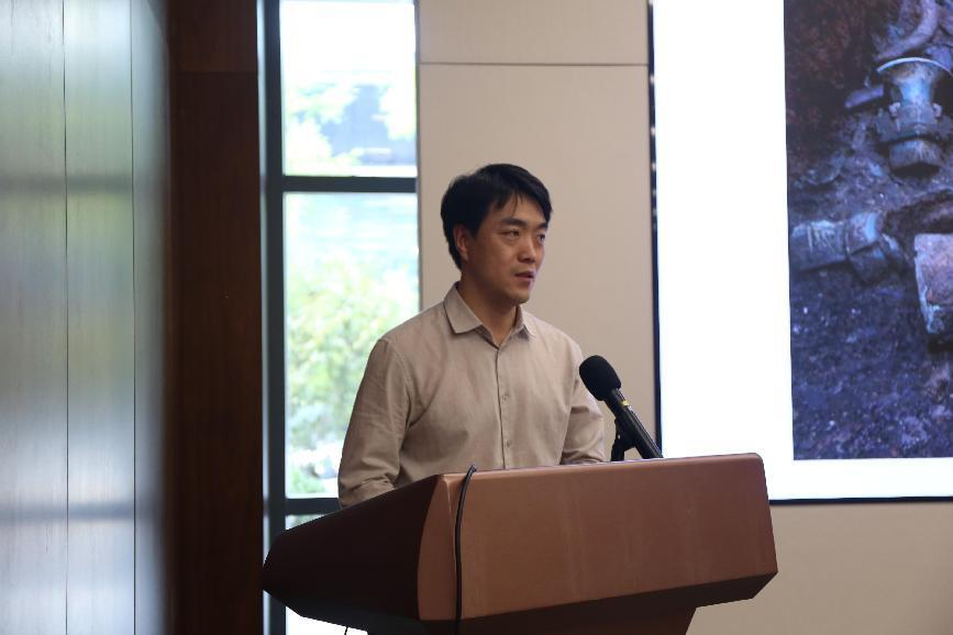 西北大学文化遗产学院博士后李晓健的发言题目为《陕西旬邑西头遗址先秦冶铜遗存的发现与研究》。李晓健发言内容主要分为两个部分:第一,介绍斜圳地点以铸铜遗存为核心的主要考古新发现,包括铜料来源、熔铜遗存、铸铜遗物等,以及铜炼渣、炉壁、原始瓷、印纹硬陶等遗物;第二,介绍该地点考古发现的意义及相关遗存的初步认识。通过梳理西头遗址和斜圳地点以铸铜遗存为核心的主要考古新发现,辨析铜料的来源以及熔铜遗存、遗物,找到了其铸铜的线索,李晓健老师指出,斜圳地点的遗存整体年代为西周时期,具体可分为三个阶段:第一阶段遗存为夯土建筑和H48,第二阶段遗存主要是熔铸遗存,至第三阶段遗址彻底废弃。