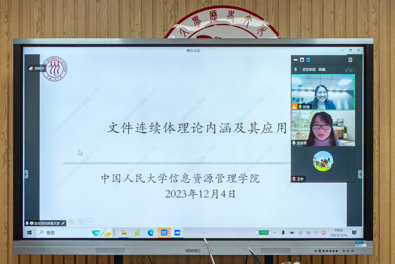12月4日晚,国家级档案专家、中国人民大学信息资源管理学院博士生导师连志英教授作客“兰台论坛”,为我院师生作题为“文件连续体理论的内涵及其应用”的专题学术报告(线上)。历史文化学院副院长曲春梅教授主持报告。