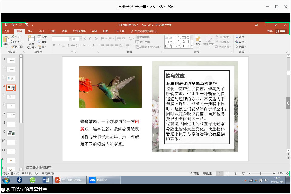 此后,于皓宇围绕书籍《我们如何走到今天》与同学们进行分享讨论。这本书用六项伟大的发明创新,讲解了一部浪漫的文明史,以新颖的眼光看待世界的发展。于皓宇从“蜂鸟效应”谈起,选取了六项创新中的玻璃与我们目前日常生活的关系,通过玻璃的发展史,透视社会生活的演进。“蜂鸟效应”引起同学们的讨论,章军杰老师也就文化产业当中的“蜂鸟效应”发表了自己的看法。