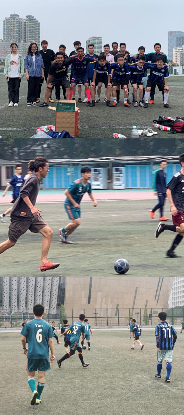 本次参赛的历史文化学院足球队成员由本硕多个年级的同学组成。在队长洪浩同学的带领下,球队紧密配合,在上半场首先进球。但对方实力强横,纵使我方队员竭尽力量,我方球门仍两度被破,对方抢占两分,一度领先。下半场,队员吸取上半场经验教训,进行人员优化、战略调整,队员不气馁、不灰心,努力拼搏,积极应战。最终虽未取胜,却收获了快乐和友谊。