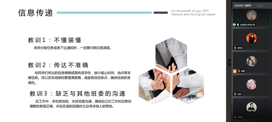 此次经验交流会面向历史文化学院全体本科生,推动了“三全育人”综合改革落在立德树人实效上,加强了优秀学生党员的模范带动作用,强化了青年党员的使命和担当,对帮助同学们成长为德智体美劳全面发展的时代新人具有积极作用。