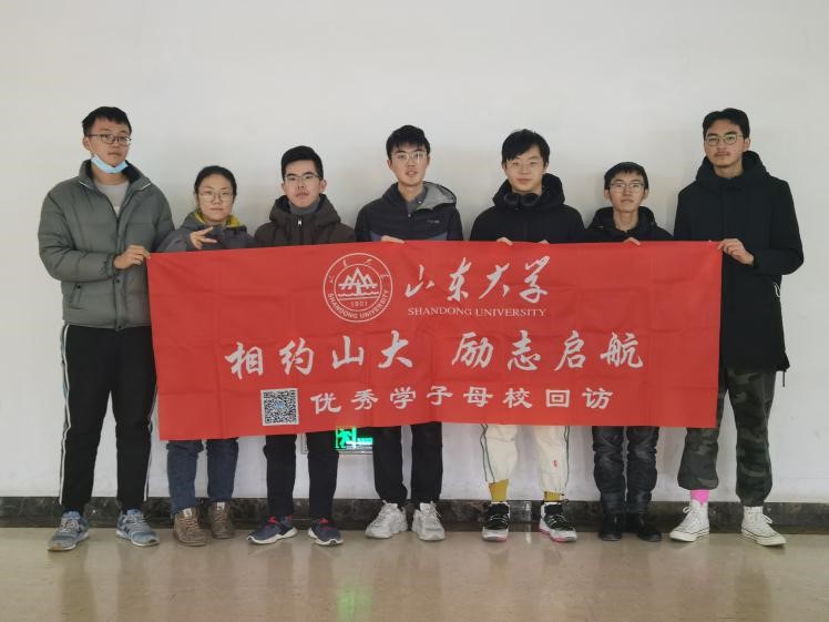 2021年1月28日—2月20日期间,太阳成集团tyc151cc“相约山大•励志起航”优秀学子母校回访山东省374团队顺利完成回访任务。该队伍由历史文化学院的李殿政同学组织并担任队长,其余的七名组员包括历史文化学院的孟庆伟、马步云、葛祥宏,文学院的张雨航,基础医学院的朱锐熠、张万哲,生命科学学院的钟雅楠。