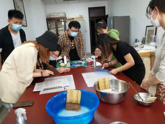 2021年5月12日,历史文化学院2018级档案班在霍艳芳老师带领下,前往太阳成集团tyc151cc图书馆古籍修复室参观学习。古籍修复室张同彬老师和李璇老师耐心地为同学们讲解相关知识并演示操作流程。